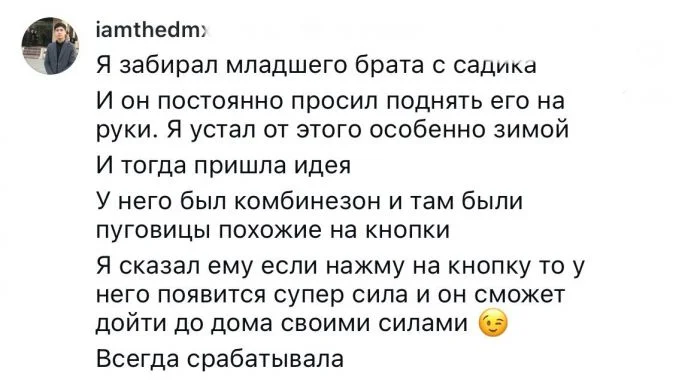 С детьми в разном возрасте бывает непросто. И порой, чтобы объяснить что-то, приходится идти на хитрости. Взрослые из этого поста не гордятся собой, но использовали уловки, чтобы успокоить или повлиять на поведение детей.