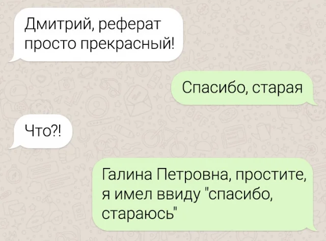 Автозамена должна была сделать нашу жизнь проще... Но от нее лишь одни конфузы! Но хоть с ними не заскучаешь. Давайте посмотрим новую подборку забавных переписок, в которых произошли нелепые опечатки и замены слов.