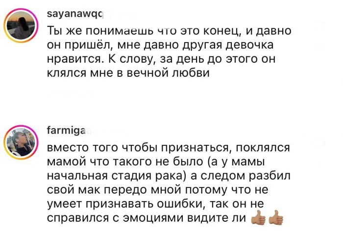 Не всегда в отношениях всё идёт гладко. Порой одна сторона решает, что можно изменять. В этом посте девушки рассказали, как их бывшие возлюбленные объяснили причину похода налево.