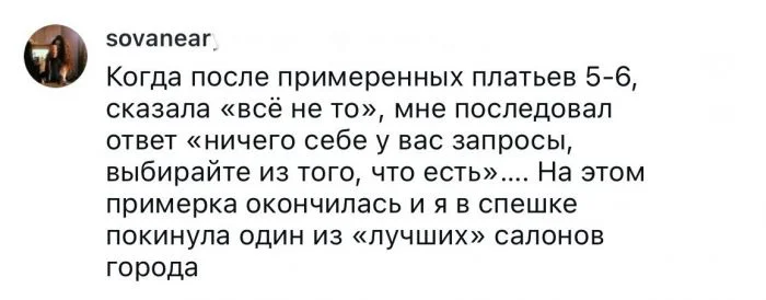 1. Девушки рассказали о своих походах в свадебные салоны, которые обернулись провалом