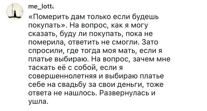 Что сказали продавцы в свадебном салоне, после чего невесты в панике покидали его