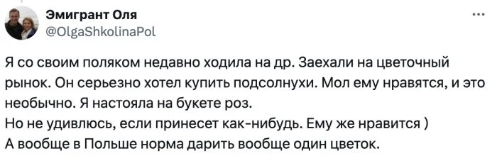 5. Но были и те, кто правда понял девушку, потому что в Европе совершенно другая система с цветами, они могут "и с одним цветком прийти"