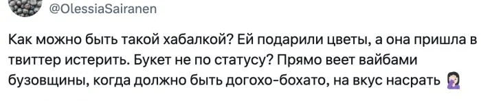 Девушки любят получать цветы от мужчин в качестве знака внимания. Но, оказывается, что неправильный букет может расстроить. В Твиттере Юлиана Яппарова поделилась своим разочарованием - и пользователи ей ответили.