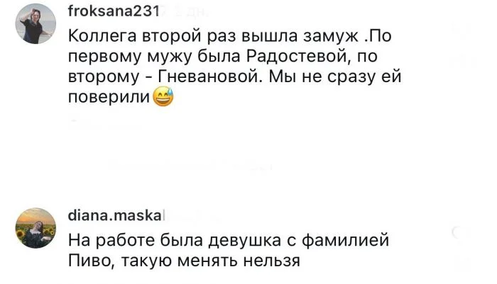 После замужества девушки часто берут фамилию мужа. Иногда совпадения бывают такими, что и такие трудно придумать нарочно. В этом посте вы найдёте забавные изменения.