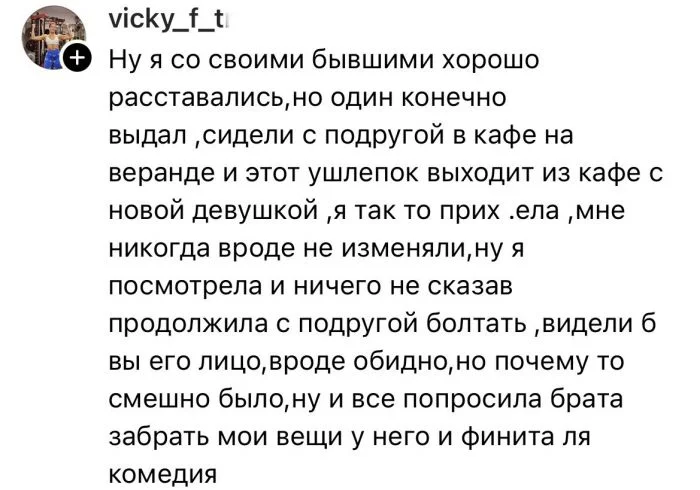 На то они и бывшие теперь! В общем в отношениях не всегда всё бывает гладко, но по поступкам можно судить о том, какой рядом человек, можно ли на него рассчитывать? В итоге девушки после очередных ситуаций поняли, что это конец.