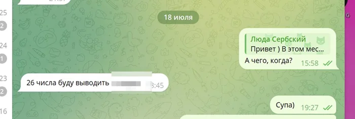 И вот ХВАЛА БОГАМ! Ей пришли деньги и она их мне кидает!