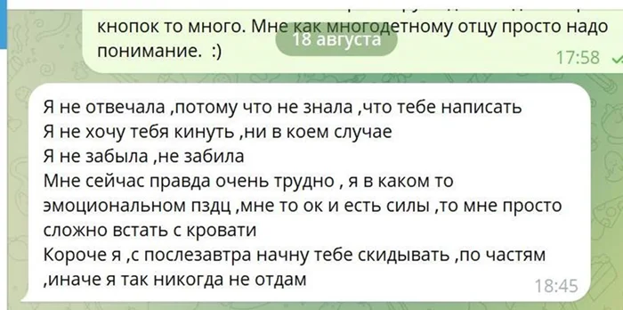 И тут я думаю: Ну каеф, она наконец то стабилизировалась и отдаст и закладываю эти деньги в свой бюджет (именно по этому и написал этот пост больше себе в напоминание что никогда не трать в голове деньги которых у тебя еще нет на руках)