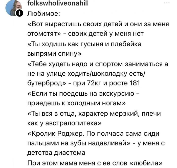 Девушка по имени Лидия в соцсетях подняла непростую для многих тему, открыв доступ к забытым воспоминаниям. Она спросила у пользователей, какие фразы напоминают о детстве. Помимо позитивных, повзрослевшие мальчики и девочки вспомнили, чему их учили родители.