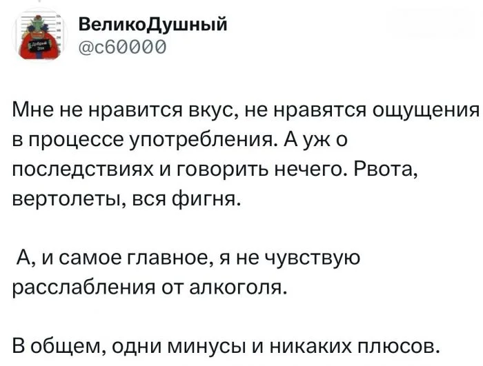 Не все пьющие — счастливыеЕсть такое заблуждение, что алкоголь помогает стать более общительным или решать проблемы. Но правда в том, что он часто только усугубляет их. Люди, которые часто пьют, могут чувствовать себя ещё более одинокими, чем те, кто обходится без него. Ты ведь не хочешь стать "грустным клоуном", который веселит всех, но сам не счастлив?