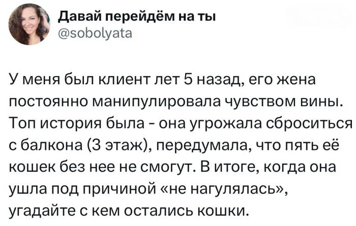 В соцсетях часто именно девушки делятся ужасными поступками мужчин, от которых уши в трубочку сворачиваются. Они делятся эмоциями после пережитого абьюза, газлайтинга или другого насилия. Но на арене сегодня - ситуации с женщинами. Оказывается, милые создания тоже могут быть жестокими и эгоистичными.