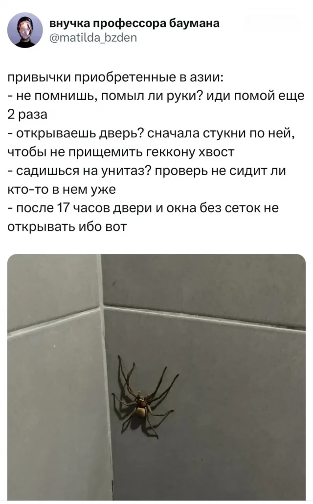 Жизнь в странах Дальнего Востока требует соблюдения особых правил. И речь не только о каких-то законах или традициях местного населения. Имеется ввиду техника безопасности, которая должна стать привычкой! Например, проверять обувь перед тем как ее надеть. В Сети на эту тему даже устроили небольшой тред. Давайте поглядим.