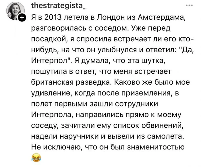 Встретить знаменитость - почти всегда событие в жизни. Даже если это кто-то, кто совершенно нам не нравится. Пользователи рассказали истории, когда кто-то из звёзд, отечественных или зарубежных, весь полёт был очень близко. Реакции, мнения и ощущения внутри поста.