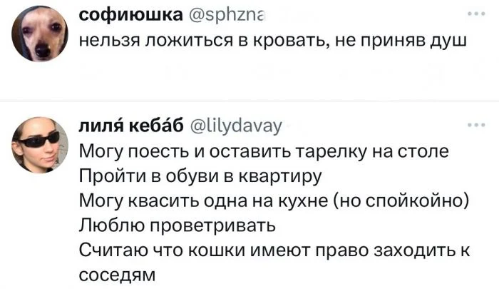 Жить с другим человеком - не всегда просто. Дело в том, что у взрослых свои привычки, выработанные годами, которые сложно менять (да и надо ли?). Пользователи решили рассказать об особенностям ведения быта, которые не всем придутся по душе.