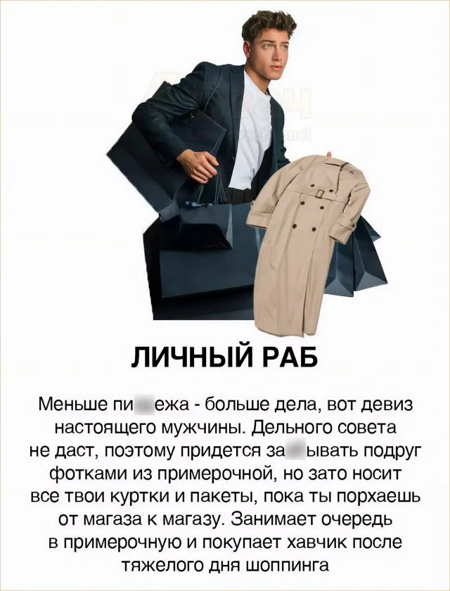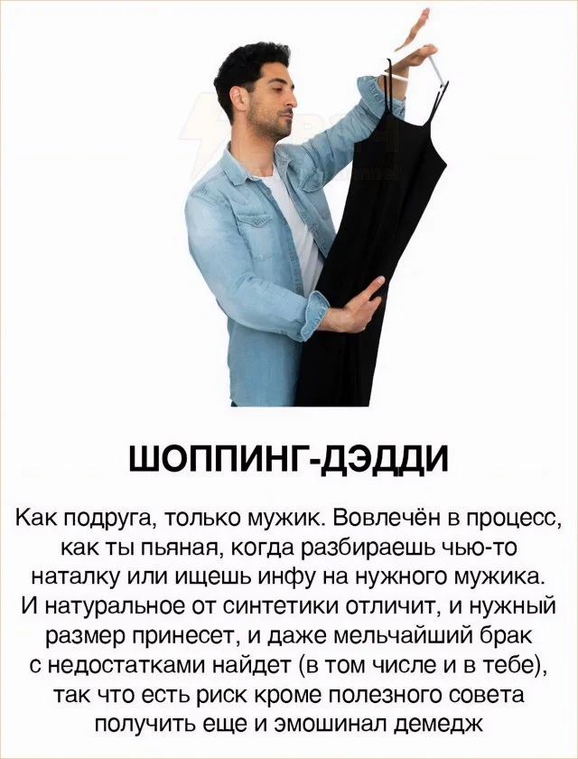 Мужской шоппинг и женский - это два принципиально разных процесса. А когда пара идет по магазинам вместе, то... легкая прогулка не гарантируется. Девушка с просторов соцсетей назвала виды парней на шопинге. Узнали себя?