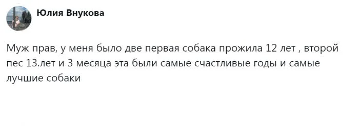 Однако есть одно обстоятельство, с которым сложно смириться: жизнь собаки гораздо короче, чем у человека. Даже долгоживущие породы и крепкие дворняги уходят раньше нас. Пережить утрату четвероногого друга невероятно трудно, и из-за этого многие люди не решаются завести нового питомца. А кто-то, только подумывая о щенке, отказывается от этой идеи, боясь неизбежной потери. Но стоит ли сознательно лишать себя радости совместных лет с верным другом? Люди много размышляли об этом, делясь своими мыслями. К каким выводам они пришли?