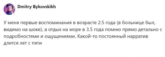 А в каком возрасте вы стали осознавать себя, и запомнился ли вам этот конкретный момент?