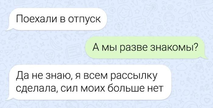 Иногда хочется подглядеть в чужие переписки и узнать, что же там такого происходит. И сейчас есть такая возможность! Пользователи сети поделились своими переписками, потому что они показались им забавными. Ну а мы собрали эту подборку, чтобы поднять вам настроение.
