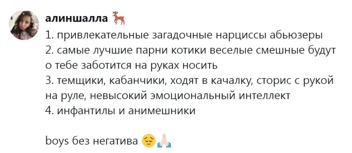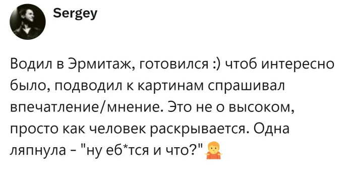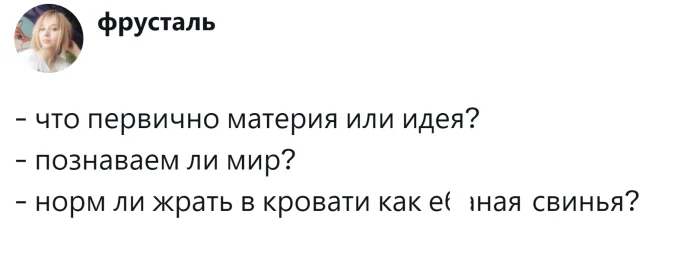 То, что мы слушаем, смотрим, читаем и едим, это не просто наши предпочтения, а глубокое отражение нашей сущности и того, как мы были сформированы. Вкусы — это особый язык, на котором мы рассказываем о себе, даже если остаемся молчаливыми. Кино, литература, музыка, еда, юмор и многое другое — это способы продемонстрировать миру, кто мы на самом деле. Если вам нравится экспериментальный джаз и острые блюда, возможно, вы авантюрист, готовый к новым приключениям. А если вы предпочитаете боевики и пюре с котлетой, скорее всего, вы цените простые радости повседневной жизни. Пользователи обсудили один из опросников и поделились своими наблюдениями о том, как вкусы формируют наше восприятие мира.