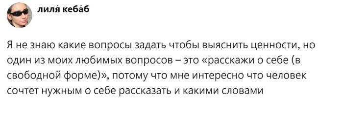 Чтобы по-настоящему понять человека, иногда даже целой жизни может не хватить. Однако в нашем стремительном мире нет возможности тратить такой драгоценный ресурс, как время, бездумно. Поэтому люди создают своеобразные краткие опросники, которые помогают быстро оценить, кто стоит перед ними, и не расходовать свои силы на бесполезные знакомства.