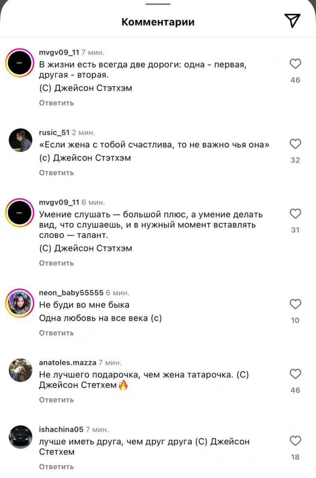 Джейсон Стейтем выложил снимок с женой, и фанаты не остались в стороне
