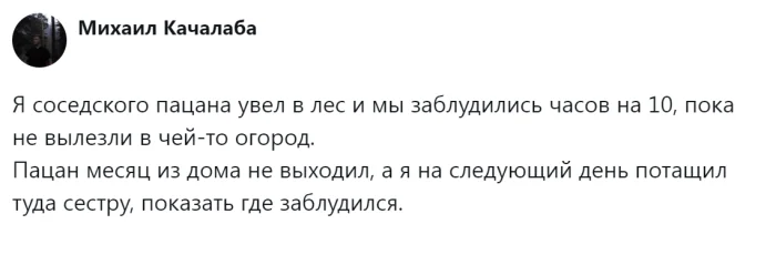Дети часто совершают поступки, которые во взрослом возрасте вызывают у них ностальгические улыбки и порой легкое волнение. От попыток достать что-то из холодильника с помощью стула до экспериментов с прическами и химическими реакциями в домашних условиях — детство полно забавных историй, которые вызывают смех, стыд или удивление от собственных смелых поступков. Пользователи делятся самыми запоминающимися примерами своих шалостей и их последствий, показывая все грани детского максимализма.