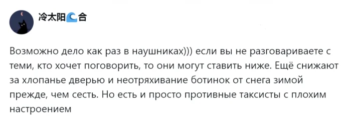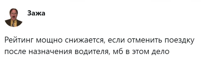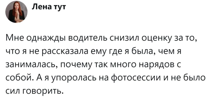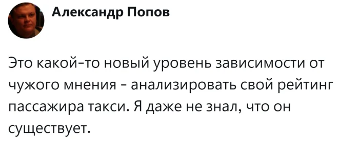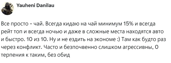 Все было бы отлично, если бы не система оценки в приложении. Если для исполнителей это действительно важно, то у клиентов возникает множество вопросов. Эти клиенты иногда задаются вопросом: даже если ты приветствуешь, прощаешься, не навязываешься в разговор, сидишь тихо и не заставляешь таксиста ждать, а также не источаешь запах алкоголя, твоя оценка медленно, но верно снижается. Пользователи недоумевают: что не так с системой в целом и с оценками в частности?