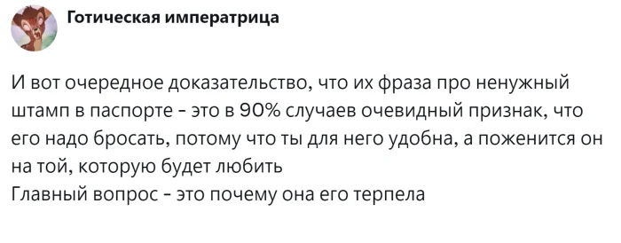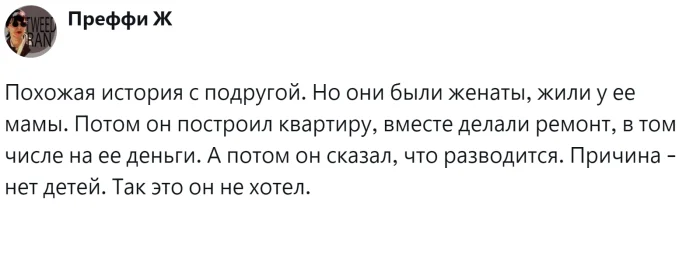 Когда впереди целая жизнь, а сердце переполнено любовью к своему избраннику, любая девушка с нетерпением ждет предложения руки и сердца, мечтая получить официальный статус жены и начать строить семью на законных основаниях. Однако не каждая невеста получает это заветное предложение. Часто бывает так, что партнеры расстаются после нескольких лет или даже десятилетий совместной жизни, ссылаясь на причины вроде «накопил на жилье», «встретил другую», «потерял чувства», или даже «мы стали чужими друг другу». Это касается обеих сторон. Пользователи обсуждают трагические примеры завершения отношений, размышляют об этом, но так и не находят ответа на вопрос, почему люди ведут себя так подло и аморально.