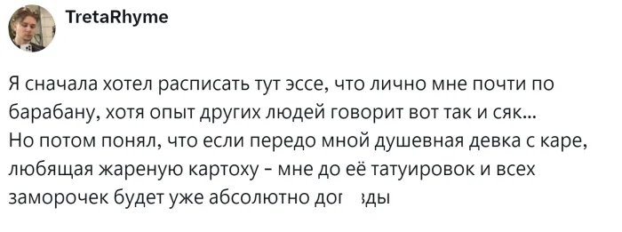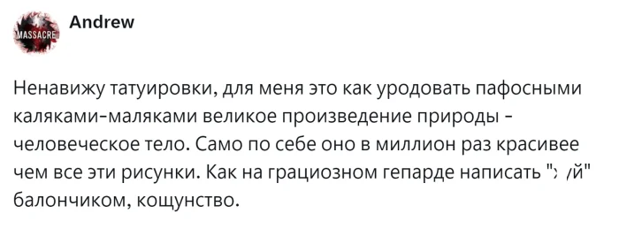 В современном мире татуировки стали не просто модным трендом, а целой формой искусства и самовыражения. Люди наносят их на тело, чтобы передать свои убеждения, сохранить воспоминания, выразить любовь к определённым темам или просто добавить стиль к своему образу. В связи с этим нередко возникает вопрос о том, насколько татуировки эстетически привлекательны и уместны. Этот вопрос обсуждали пользователи, анализируя взгляды на татуировки у представителей противоположного пола. Какие результаты они получили?