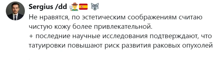 Таким образом, исследование показало, что женщины более снисходительны, в то время как мужчины проявляют большую строгость к этому вопросу. Каково ваше мнение о татуировках?