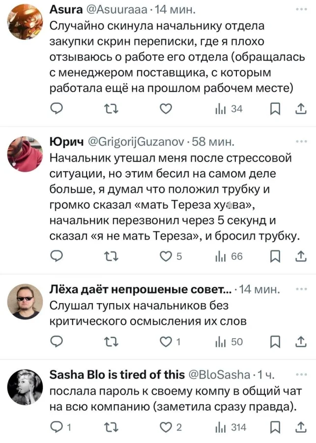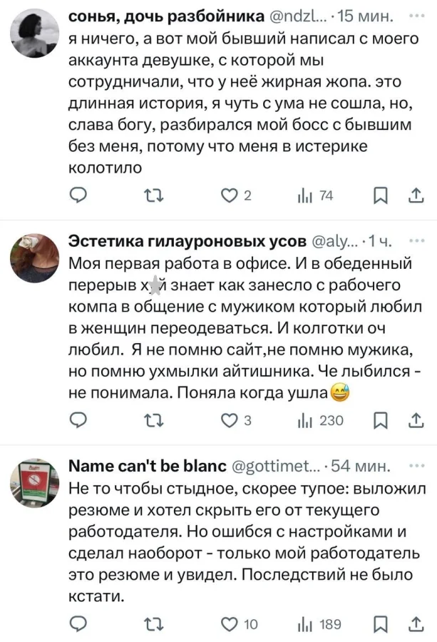 В бывшем Твиттере пользователи решили поделиться своими самыми неловкими и забавными провалами на работе.
