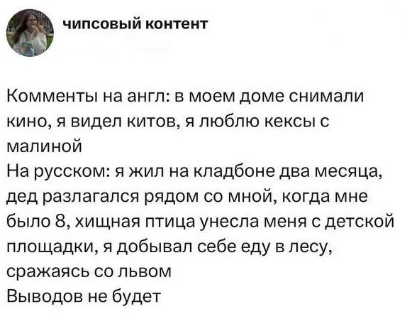 Все началось с одного поста пользователя Mood Dragon, в котором он поделился забавной картинкой и предложил рассказать о самых запомнившихся и забавных моментах из жизни. Однако со временем это переросло в целую вселенную историй, которые продолжают удивлять, трогать и даже пугать. Реальность жизни такова, что даже самые страшные ужасы меркнут перед обычными событиями жизни, а трогательные мелодрамы кажутся бледным отражением настоящей драмы.
