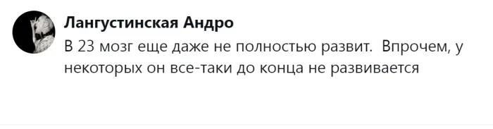 Поскольку когнитивные функции человека начинают постепенно ослабевать после 30-35 лет, заметные изменения становятся очевидными после 45 лет, а после 60 лет эти изменения становятся еще более выраженными. Этот вопрос вызвал жаркие дебаты среди пользователей, которые разделились на два лагеря. Некоторые считают, что после 23 лет человек уже не может добиться чего-либо значимого, в то время как другие убеждены, что можно изменить свою жизнь в зрелом возрасте, выучить новый язык, освоить новую профессию, запустить бизнес или заняться сложным хобби.