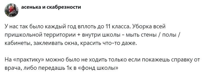 А вы проходили школьную практику? Был ли в ней практический смысл, такой как привитие ответственности и любви к труду? Или это было беззаконие и лишение школьников детства?