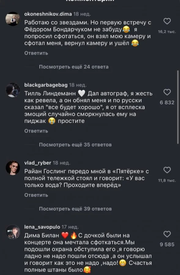 В сети интернет развернулась интересная дискуссия, в ходе которой пользователи начали делиться своими личными историями о встречах со знаменитыми людьми. Некоторые из этих историй были настолько трогательными, что буквально до слез тронули читателей. Пользователи сети поделились своими впечатлениями и эмоциями, которые они испытывали во время этих неожиданных встреч, и как эти моменты навсегда остались в их памяти.