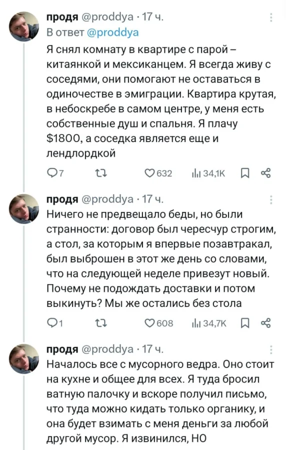 Сначала молодой человек был насторожен тем, что договор был составлен очень строго, и перед ним уже 10 человек съехали из этой квартиры. Однако, жилье ему очень понравилось, и он решил рискнуть. Но чем все это закончилось, становится ясно далее.