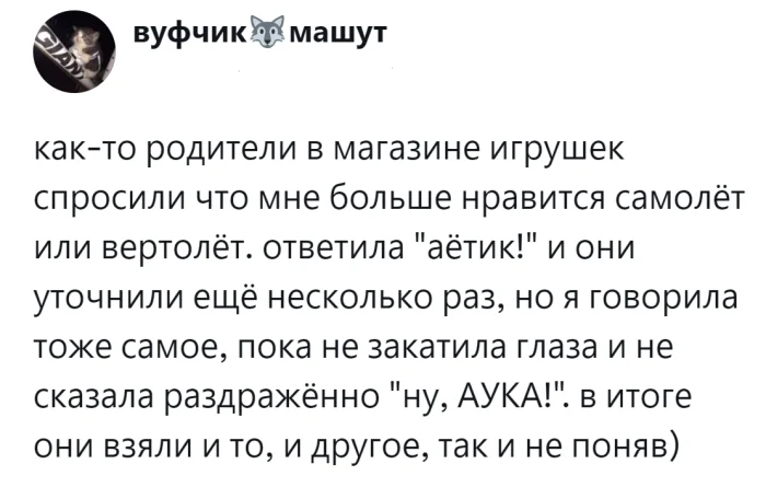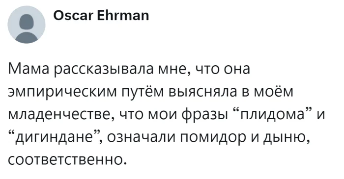 Когда дети взрослеют, они часто отказываются признавать свои детские лингвистические творения, которые когда-то казались им гениальными. Некоторые из этих выражений удаётся разгадать, а другие остаются загадкой. Пользователи делятся своими воспоминаниями и наблюдениями, подтверждая, что детские таланты безграничны.