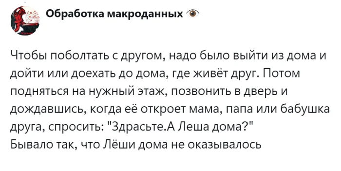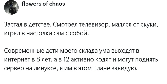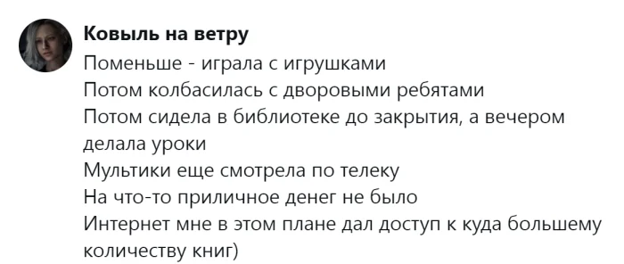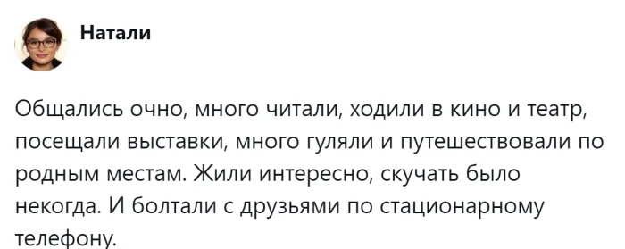Сегодня это вполне объяснимо. Работа, образование, досуг и развлечения — всё неразрывно связано с интернетом. Без него невозможно совершить покупки, заказать такси, приобрести билеты или поиграть в любимую онлайн-игру. Однако представители старшего поколения ещё помнят времена, когда интернета не существовало, а свободное время можно было посвящать другим — не менее увлекательным и полезным занятиям. Пользователи поделились ностальгическими воспоминаниями о доцифровой эпохе и обсудили преимущества и недостатки жизни без Всемирной сети.