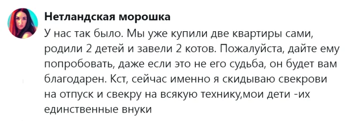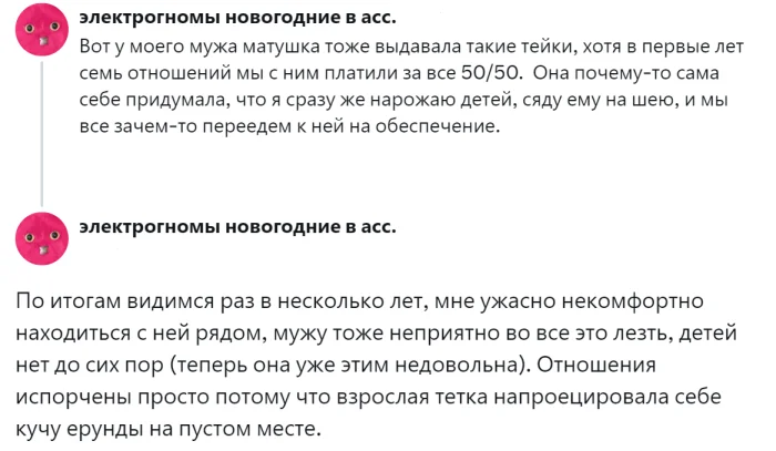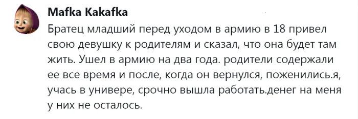 Особенно учитывая, что для более инфантильного поколения зумеров стало нормой приводить свою пассию домой, не задумываясь о серьёзных планах на совместное будущее. Молодёжь можно понять — ведь это же любовь. А все материальные и бытовые вопросы можно переложить на плечи родителей, которые в этот момент тихо ужасаются, готовятся к новой ответственности и делятся переживаниями с такими же "счастливчиками" в интернете.