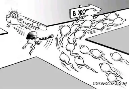 Позади всех плетется сперматозоид, весь кривой-хромой и кричит: