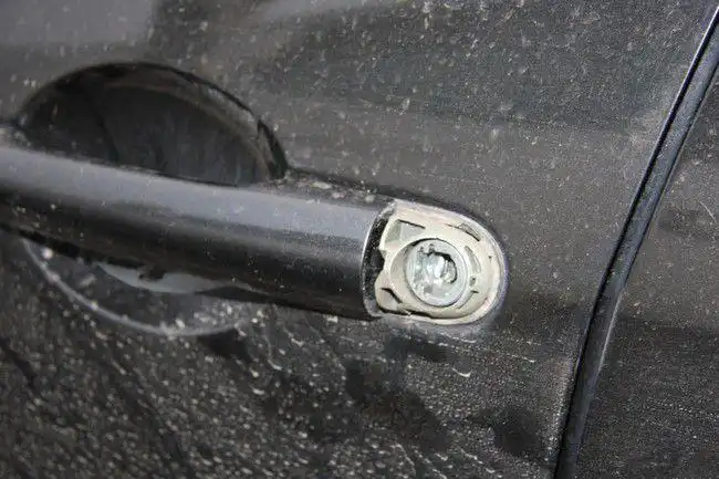На фото видно что машину пытались вскрыть..то ли ниче не получилось, то ли для вида..