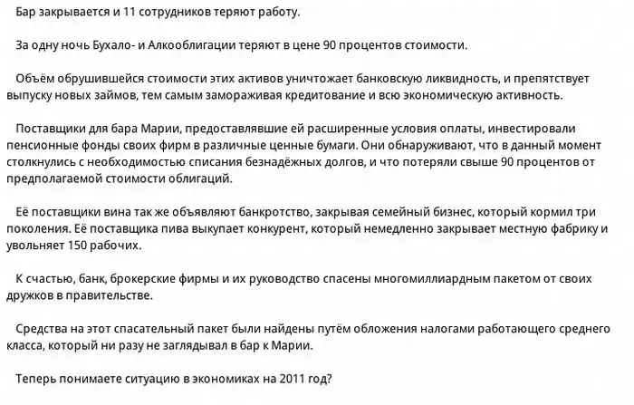 Экономика 2011 на простейшем примере одного бара.