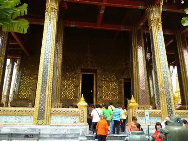 Представляю фото Королевского дворца в Бангкоке, в котором лежит знаменитая сорокаметровая Будда. Такого шедевра и таких масштабов не увидите нигде: