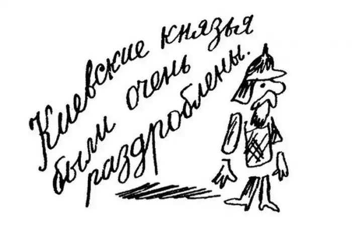 * Тарас сел на коня. Конь согнулся, а потом засмеялся.