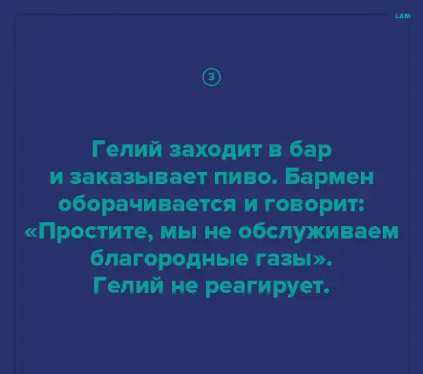 ГЕЛИЙ — один из наиболее инертных газов, не реагирует ни с чем. Из всех веществ гелий имеет самую низкую температуру кипения -269°С. Жидкий гелий — самая холодная жидкость. «Замерзает» гелий при - 272° С. Эта температура всего на один градус выше температуры абсолютного нуля.