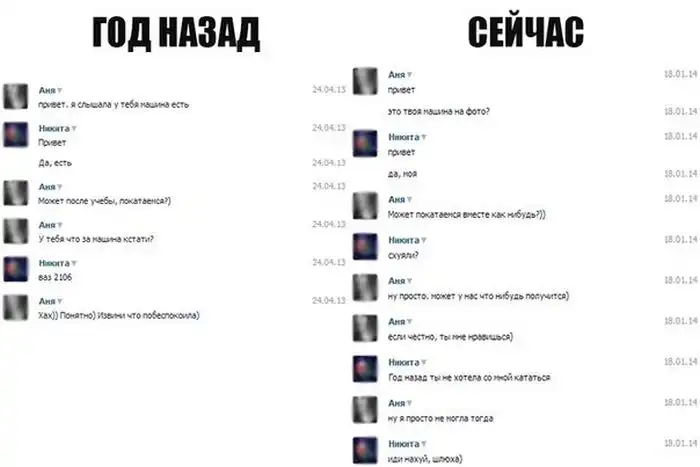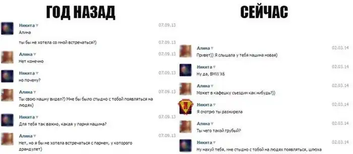Один парень опубликовал в социальной сети весьма интересное сравнение того, как наличие и марка автомобиля влияет на отношение девушек к нему ;)