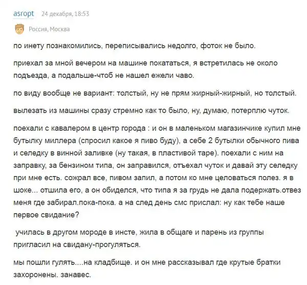 Неудачные свидания надолго оставляют плохой отпечаток, как минимум для одного человека.