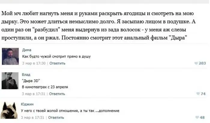 Пошлые посты из соцсетей с забавными комментариями к ним. Часть 4