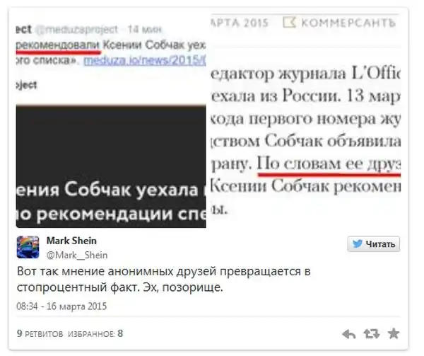 13 марта во время ужина в Центральном Доме литераторов, на котором побывала телеведущая Ксения Собчак, она объявила о своём временном отъезде из страны. На данном мероприятии журналистка появилась в сопровождении мужа и двух телохранителей. Собчак стала опасаться за свою жизнь после появления в сети таинственных «расстрельных списков», где было и ее имя. «По рекомендации спецслужб» - так причину отъезда сформулировали близкие Ксении и точно так же написали в СМИ. Данная фраза очень понравилось пользователям сети, начавшим шутить по данному поводу.