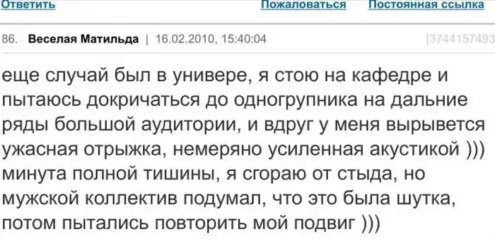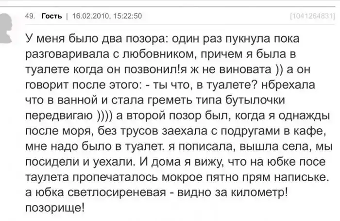 Предлагаем вашему вниманию подборку позорных случаев из жизни женщин, которыми они сами делятся со всеми на своих форумах.