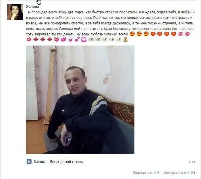 Далее вас ждет очень трогательная и совершенно нешаблонная любовная переписка, которая отличается от большинства других переписок обычных влюбленных людей. Действующие лица: девушка Хелена и парень Самир, который волей судьбы оказался в местах лишения свободы.